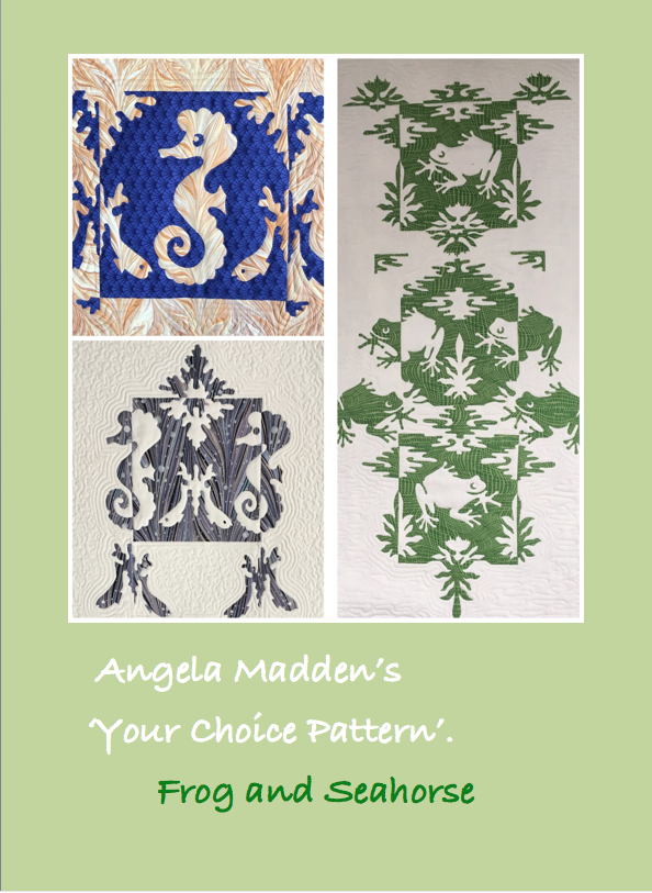 Includes two separate patterns, the seahorse and the frog. They can be used individually or combined in so many ways to create unique appliqué and quilted items... you chose the number and type of animals, the direction in which they face, their positions and those of the other pattern pieces to suit the size of your project, from a cushion to a full size quilt. Fast to put together and simple to machine sew. Suitable for all levels of experience. Ideal for a first project. One of the 'Your Choice Pattern' series, all of which can be easily combined creating your own 'designer original' item.